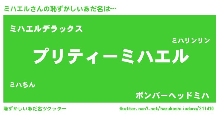 | ヘコむあだ名 | 『ミハふぇ~』『ミハっ子』『豆乳』 |