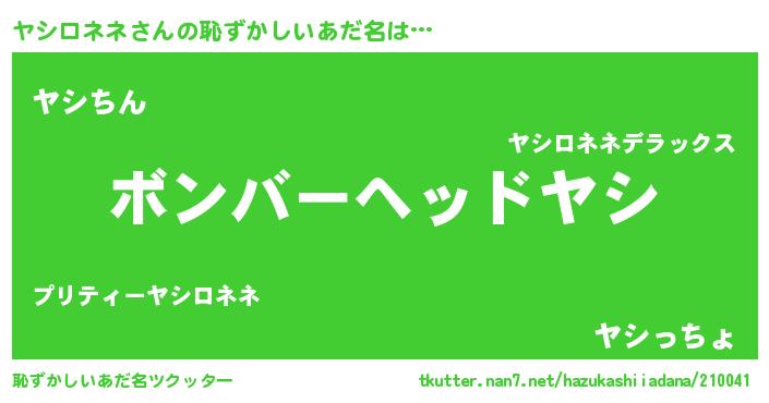 | ヒーロー風カッコイイあだ名 | 『仮面ヤシダー』『慈愛の使者ヤシロネネ』 |