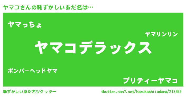 | 男性向けラノベタイトル風あだ名 | 『Re:ヤマコから始める異世界生活』 |