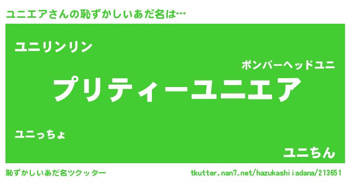 | 意味不明あだ名 | 『ペロリンユニエア』『永久保存ユニエア』 |