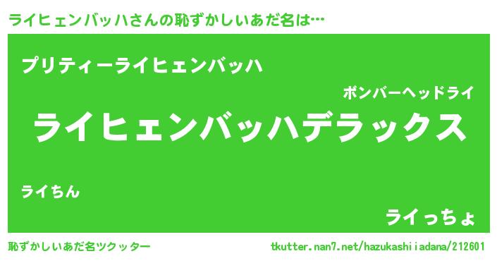 | ヘコむあだ名 | 『ライもー』『レバニラ』『ライっぺ』 |