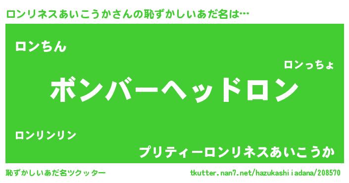 | ヒーロー風カッコイイあだ名 | 『慈愛の使者ロンリネスあいこうか』 |