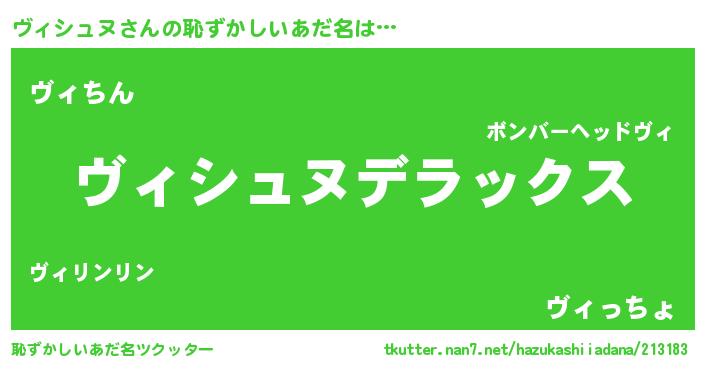 | 男性向けラノベタイトル風あだ名 | 『Re:ヴィシュヌから始める異世界生活』 |