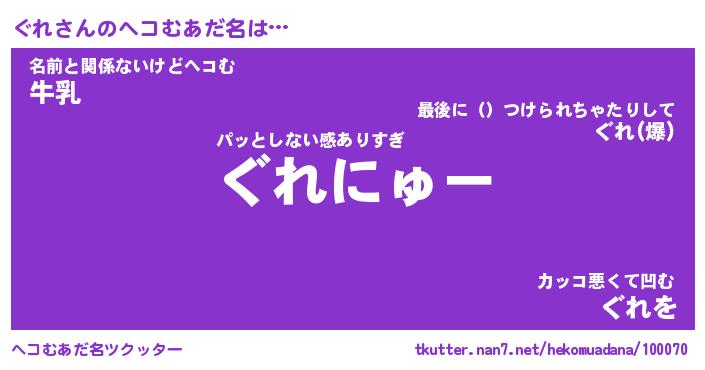 | 2回繰り返すあだ名 | 『ぐれぐれ』『ぐぐれれ』『うるうる』 |