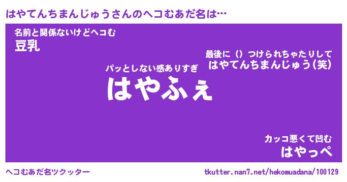 | 胡散臭い通販商品みたいなあだ名 | 『必ず成功する水晶球…その名も「はやてんちまんじゅう」』 |
