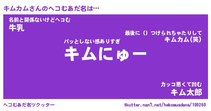 | 男性向けラノベタイトル風あだ名 | 『キムカムの憂鬱』 |