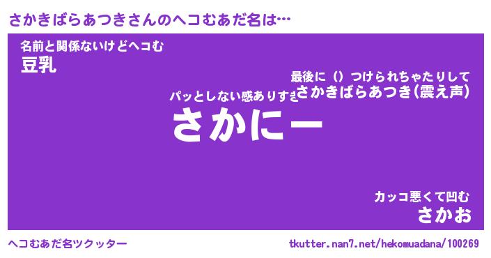 | 胡散臭い通販商品みたいなあだ名 | 『モテモテ間違いなしブレスレット…その名も「さかきばらあつき」』 |