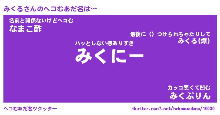 | ヒーロー風カッコイイあだ名 | 『スーパーミクル』『ウルトラみくるマン』 |