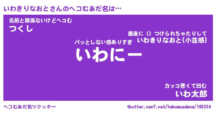 | 男性向けラノベタイトル風あだ名 | 『イワキリナオトアートオンライン』 |