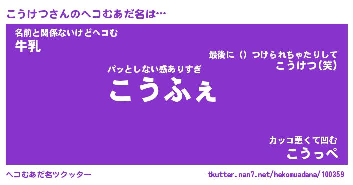 | ファンタジー風あだ名 | 『コウフェル』『エターナルコウケツー』 |