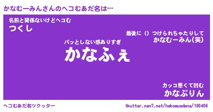 | ヒーロー風カッコイイあだ名 | 『スーパーカナムーミン』『黄金騎士カナ』 |