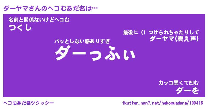 | ファンタジー風あだ名 | 『ダーフェル』『エターナルダーヤマー』 |