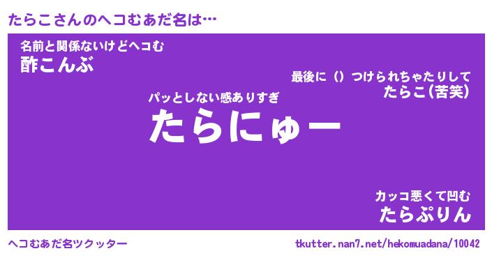 | ヒーロー風カッコイイあだ名 | 『スーパータラコ』『ウルトラたらこマン』 |