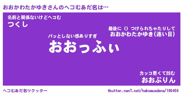 | 胡散臭い通販商品みたいなあだ名 | 『必ず成功する霊験あらたかなお札…その名も「おおかわたかゆき」』 |