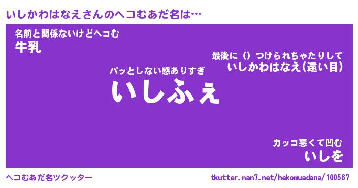 | 胡散臭い通販商品みたいなあだ名 | 『必ず成功するブレスレット…その名も「いしかわはなえ」』 |