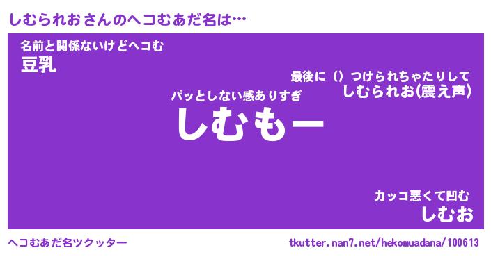 | 2回繰り返すあだ名 | 『しむしむ』『ししむむ』『ぬらぬら』 |