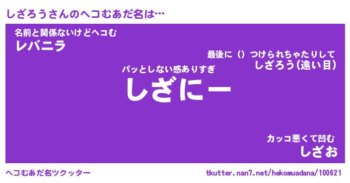 | 2回繰り返すあだ名 | 『しざしざ』『ししざざ』『ぶらぶら』 |