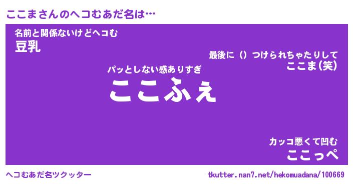 | ヒーロー風カッコイイあだ名 | 『スーパーココマ』『ウルトラここまマン』 |