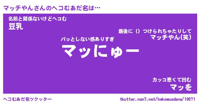 | 男性向けラノベタイトル風あだ名 | 『マッチやんの憂鬱』 |