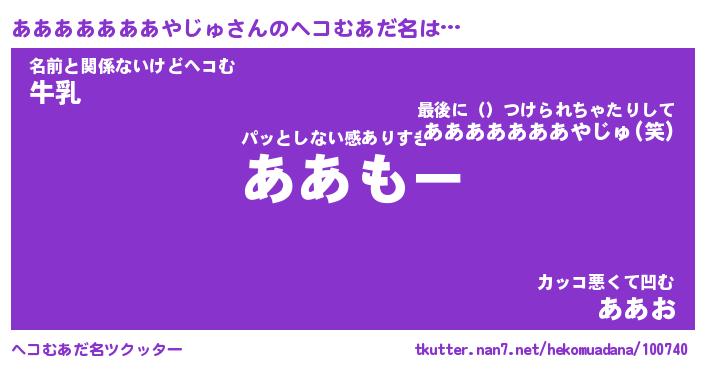 | 胡散臭い通販商品みたいなあだ名 | 『必ず成功する霊験あらたかなお札…その名も「あああああああやじゅ」』 |