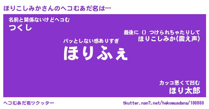 | 意味不明あだ名 | 『ペロリンほりこしみか』 |