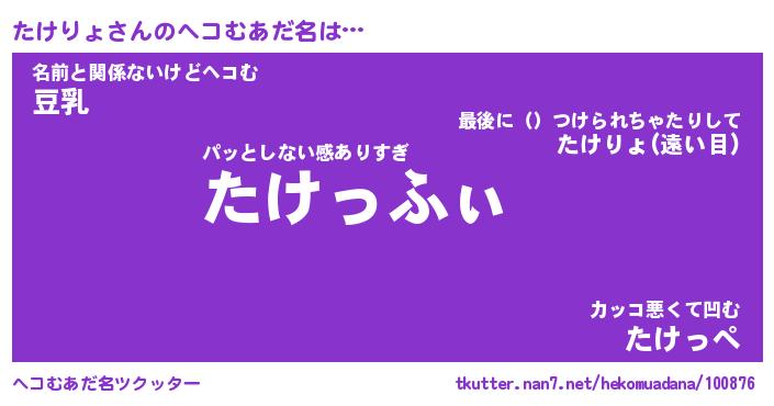 | ポケモン風あだ名 | 『タケチュウ』『タケリダネ』 |
