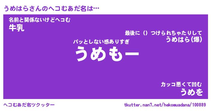 | ファンタジー風あだ名 | 『ウメフェル』『エターナルウメハラー』 |