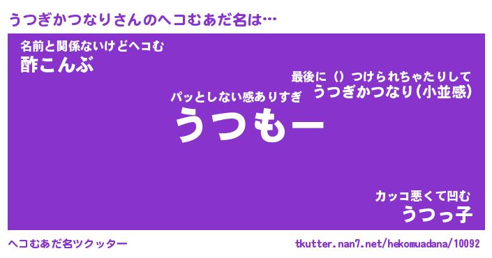 | 男性向けラノベタイトル風あだ名 | 『うつぎかつなりの憂鬱』 |