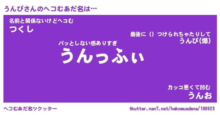 | ヒーロー風カッコイイあだ名 | 『スーパーウンピ』『ウルトラうんぴマン』 |