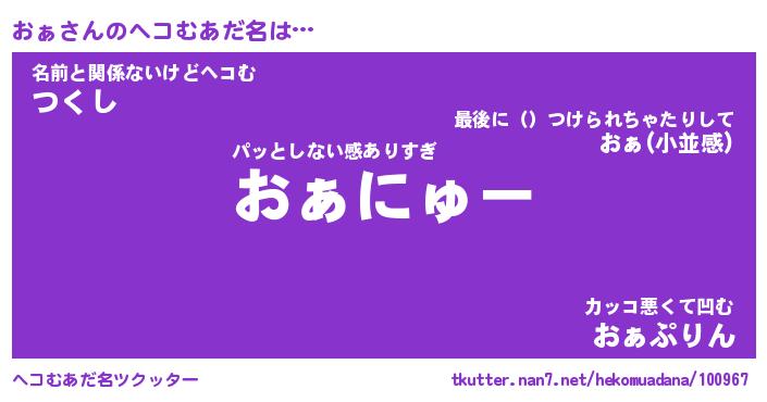 | ポケモン風あだ名 | 『オァチュウ』『オァダネ』『ヒオァ』 |