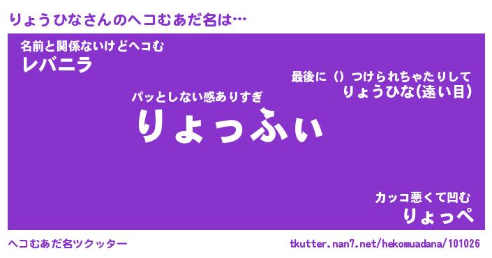 | ファンタジー風あだ名 | 『リョフェル』『エターナルリョウヒナー』 |
