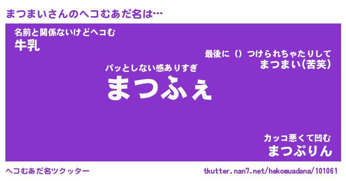 | 2回繰り返すあだ名 | 『まつまつ』『ままつつ』『ぬらぬら』 |