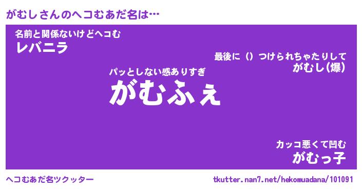 | 2回繰り返すあだ名 | 『がむがむ』『ががむむ』『こぽこぽ』 |