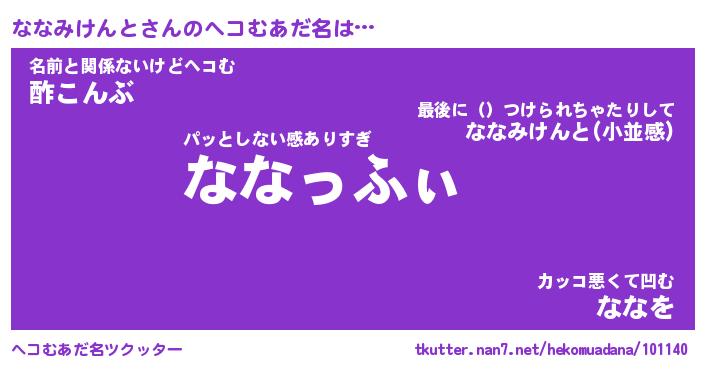 | 意味不明あだ名 | 『ペロリンななみけんと』 |