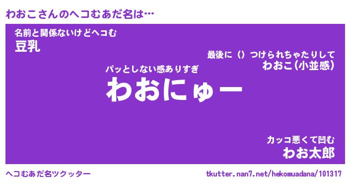 | ファンタジー風あだ名 | 『ワオフェル』『エターナルワオコー』 |