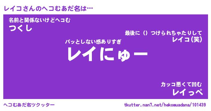 | 意味不明あだ名 | 『ペロリンレイコ』『レイコフォーエバー』 |
