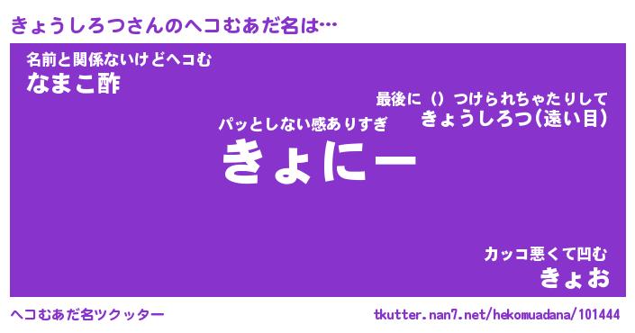 | ヒーロー風カッコイイあだ名 | 『スーパーキョウシロツ』『幻影騎士キョ』 |