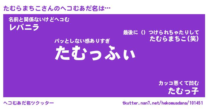 | 2回繰り返すあだ名 | 『たむたむ』『たたむむ』『うるうる』 |