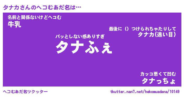 | ファンタジー風あだ名 | 『タナフェル』『エターナルタナカー』 |