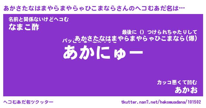 | ツイッター | あかさたなはまやらまやらゃひこまならさんのツイッターID『namakemono_idle』 |