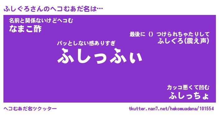 | 意味不明あだ名 | 『ペロリンふしぐろ』『永久保存ふしぐろ』 |