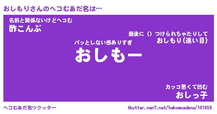 | 男性向けラノベタイトル風あだ名 | 『おしもりの憂鬱』 |