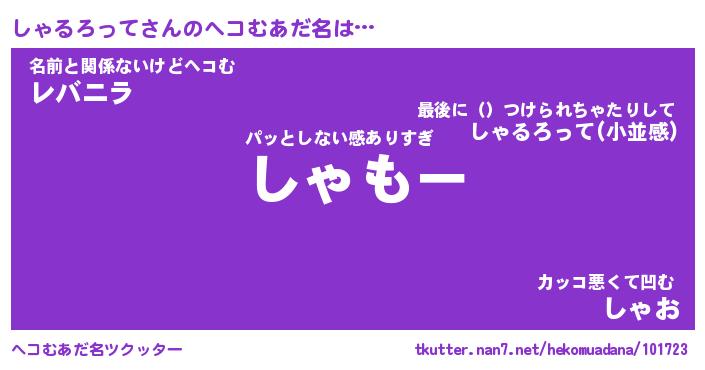| 男性向けラノベタイトル風あだ名 | 『しゃるろっての憂鬱』 |