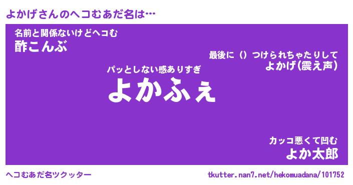 | ヒーロー風カッコイイあだ名 | 『スーパーヨカゲ』『ウルトラよかげマン』 |