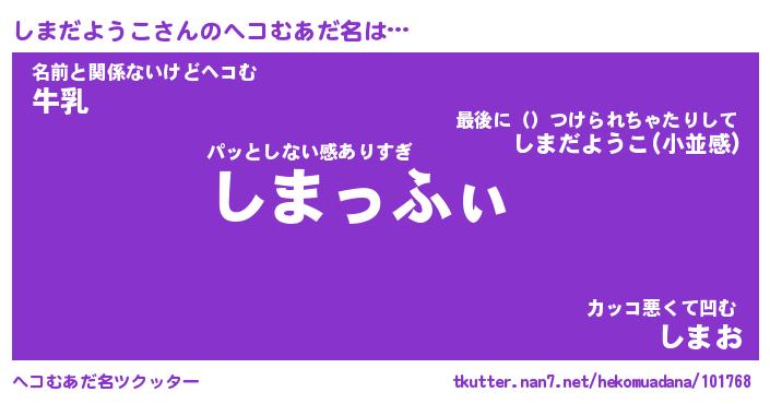 | 胡散臭い通販商品みたいなあだ名 | 『モテモテ間違いなし霊験あらたかなお札…その名も「しまだようこ」』 |