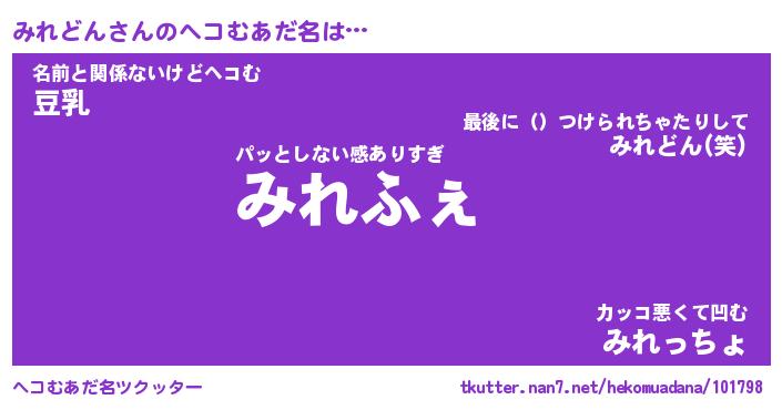 | 意味不明あだ名 | 『ペロリンみれどん』『永久保存みれどん』 |
