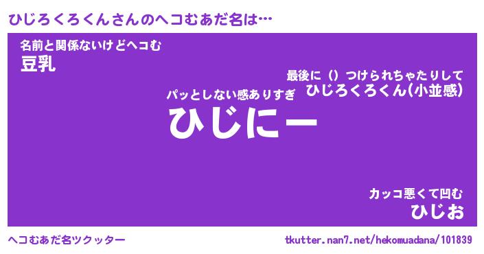 | 男性向けラノベタイトル風あだ名 | 『ひじろくろくんの憂鬱』 |