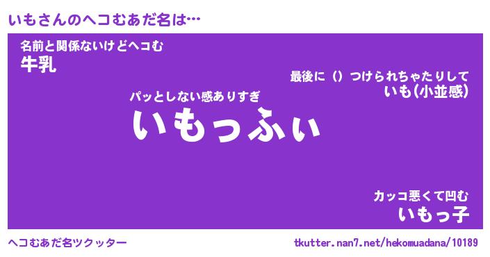 | 2回繰り返すあだ名 | 『いもいも』『いいもも』『ぷらぷら』 |