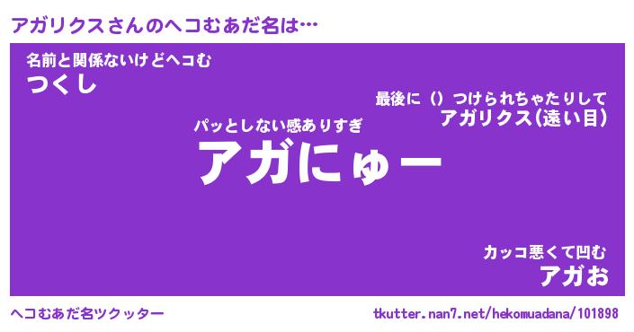 | ヒーロー風カッコイイあだ名 | 『スーパーアガリクス』『天弓騎士アガ』 |
