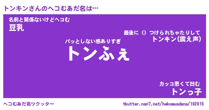 | ファンタジー風あだ名 | 『トンフェル』『エターナルトンキンー』 |